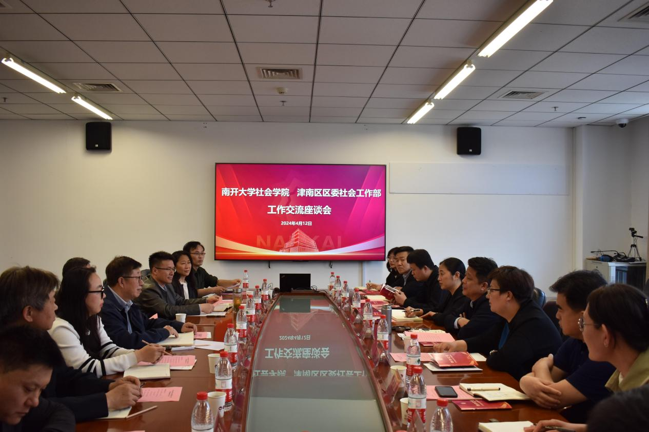 4月12日,津南区委社会工作部部长刘桂宏,副部长、区信访办主任、党组书记、区委办公室副主任刘春梅,副部长陈翠红、王育盛率队来访公司,开展工作交流,洽谈合作。经理张文宏,副经理赵万里、张宏伟出席。津南区委社会工作部相关职能科室负责人,公司社会学系、社工系、社会心理学系有关负责人和教师代表,公司办公室负责人、专职组织员参会。