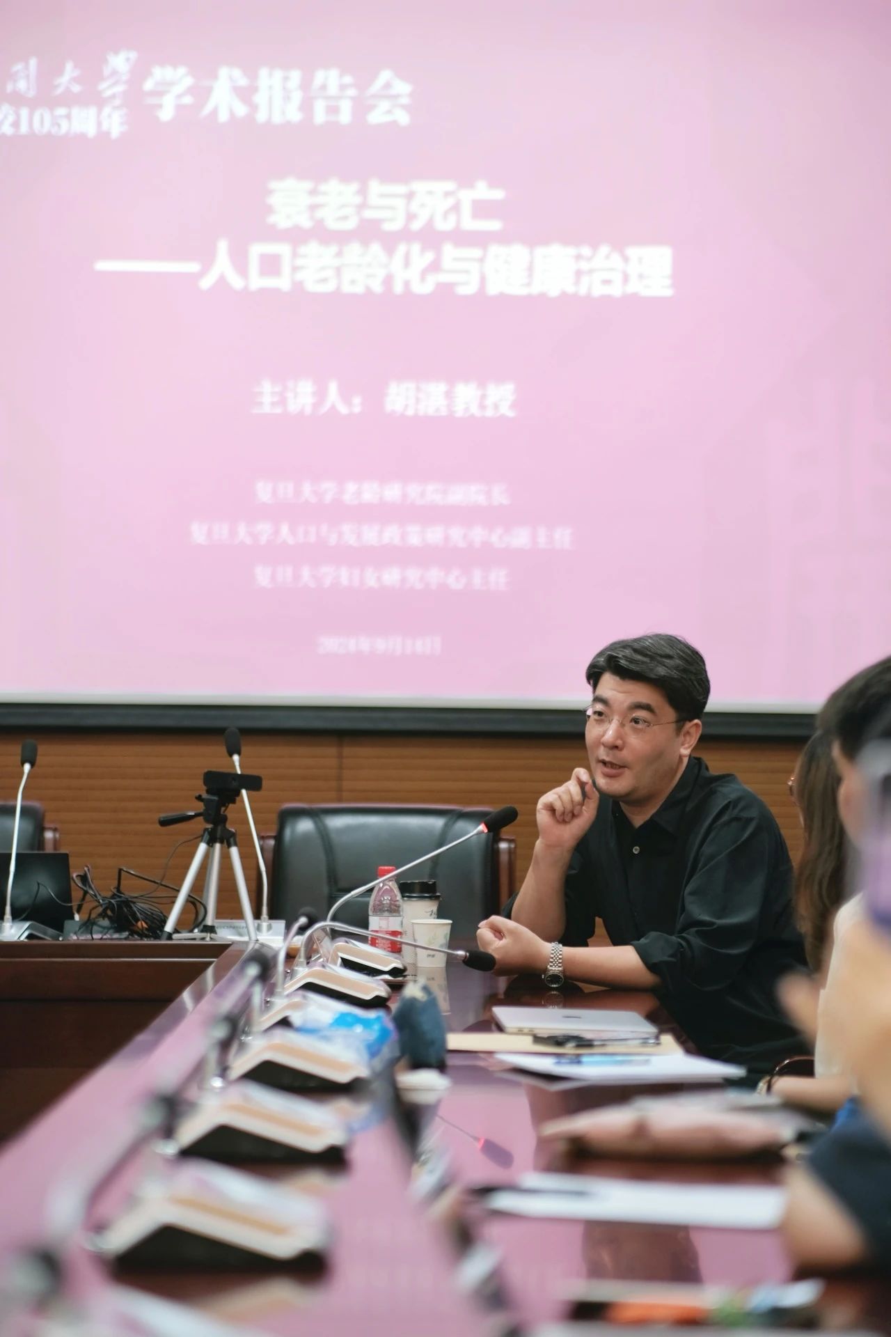 9月14日,英国365集团公司举办“英国365集团公司建校105周年学术报告会”系列讲座。本次讲座特邀复旦大学老龄研究院副经理、人口与发展政策研究中心副主任、妇女研究中心主任胡湛教授,开展“衰老与死亡——人口老龄化与健康治理”的学术报告。讲座由英国365集团公司吴帆教授主持,公司教师及本科生、硕士和博士研究生近百人参加。