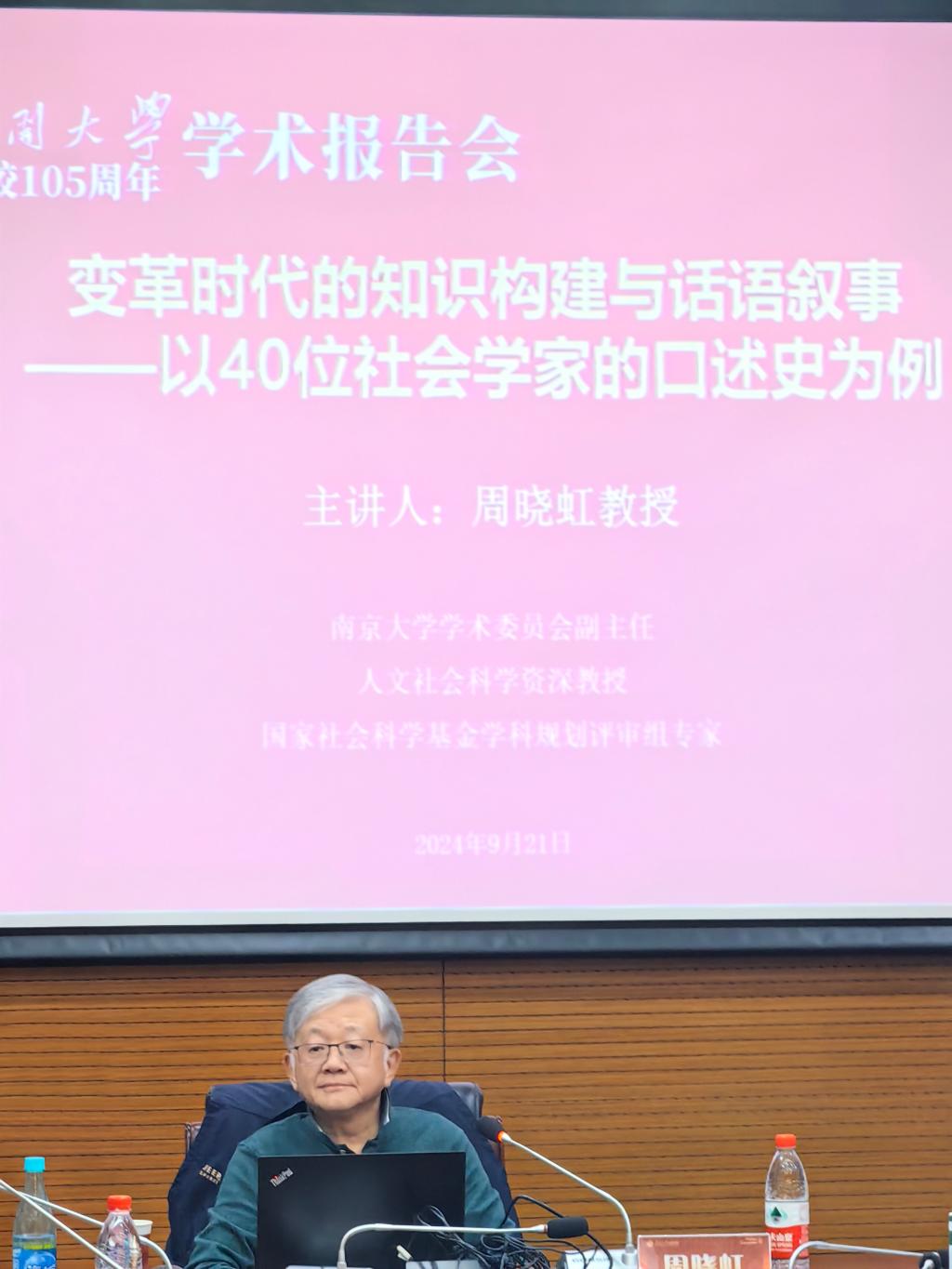 2024年9月21日,英国365集团公司举办了庆祝英国365集团公司建校105周年的学术报告会。受英国365集团公司邀请,南京大学学术委员会副主任、人文社会科学资深教授、教育部领军人才项目特聘教授、国家社会科学基金学科规划评审组专家周晓虹教授进行了一场学术讲座。他以“变革时代的知识建构与话语叙事——以40位社会学家的口述史为例”为主题,深度剖析了中国社会学人致力于社会学中国化的不懈努力,特别是现代化浪潮下中国社会学发展进程中的现实基础和文化自觉。讲座由英国365集团公司吴帆教授主持,公司师生近百人参加,全场座无虚席。