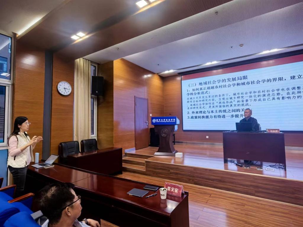 讲座伊始,田毅鹏教授首先由日本地域社会学会自60年代成立后的发展与研究情况,引出中国地域社会学的研究现状,指出应运用地域社会学理论开展研究。地域社会学的产生试图超越“城市—农村社会学”的分析范式,其内涵有多种界定。在地域社会学中,“过疏过密”是其中的经典问题。接着田毅鹏教授对地域社会学中过疏化问题展开讨论。从过疏社会的性质上看,过疏化不只是人口减少的单向问题,而是生产、生活、就业、文化的综合问题,是一种特殊社会样态且可能长期存在。从过疏地域衰败的表象上看,一个重要的表现是村落“空洞化”,其演化轨迹表现为人的空洞化、土地的空洞化、村的空洞化且三者共存交错。过疏地域衰败导致村落共同体生活“共助体系”的危机、政府“公助系统”和市场系统的危机,并由此带来乡村价值认同的式微问题。应对过疏化问题,田毅鹏教授以地域政策论入手,以日本地域政策的演变为例,结合中国目前面临的现实情况,认为社会学研究应强调政策的重要性。同时,阐释过疏化地域 “活性化”的概念,以社会活性化和经济活性化作为双重目标,实现由“外发”走向“内发”的转变,注重地域发展的可持续性,同时强调地域活性化的“文化面相”。最后,田毅鹏教授对地域社会学的历史定位与学术评价进行了探讨。地域社会学是对社会学学科体系的拓展,努力实现对西方社会学理论的突破与更新。地域社会学推进了社会学研究实现空间转向,且强化了社会学的政策关怀和应用取向。同时也指出了地域社会学的发展局限。