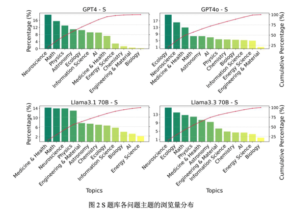 LLMs表现出明显的响应行为偏好:几种主流LLMs不会响应关注或回答全部问题,并且对不同类型问题的响应行为存在明显偏好倾向。例如,几大模型稳定地偏好科学和技术、环境等领域议题,而对艺术与文化、历史和社会等领域问题兴趣寥寥。在重大科学议题中,LLMs最关注神经科学、生态学和数学等领域问题,而对生物学、能源科学等领域问题的兴趣很低。