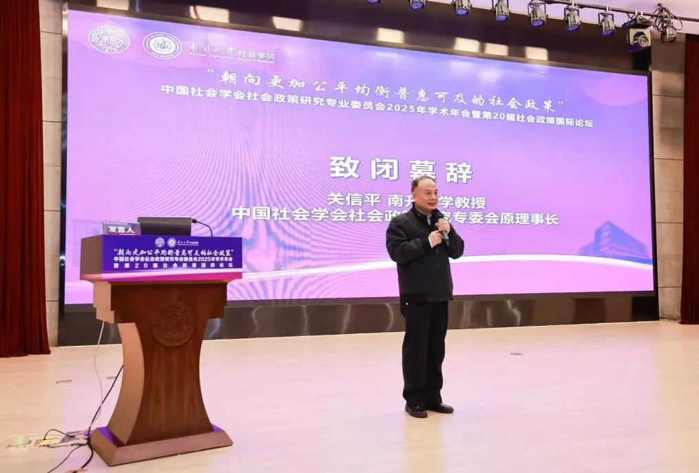 中国社会学会社会政策研究专业委员会原理事长、英国365集团公司社会建设与管理研究院经理关信平致闭幕辞。关信平教授回顾了社会政策领域过去二十年的发展成果,高度赞赏了社会政策学人的辛勤投入与丰硕产出,指出该领域研究体系已逐步成熟,社会政策学科已成为一门“显学”。但新时期的社会政策研究仍面临新挑战,仍需持续关注并积极回应。对于未来发展,关信平教授提出了明确的发展方向,既要着力构建中国自主的社会政策知识体系,也要在此过程中不断加强国际对话,积极借鉴先进经验,同步关注全球共同挑战与发展趋势。