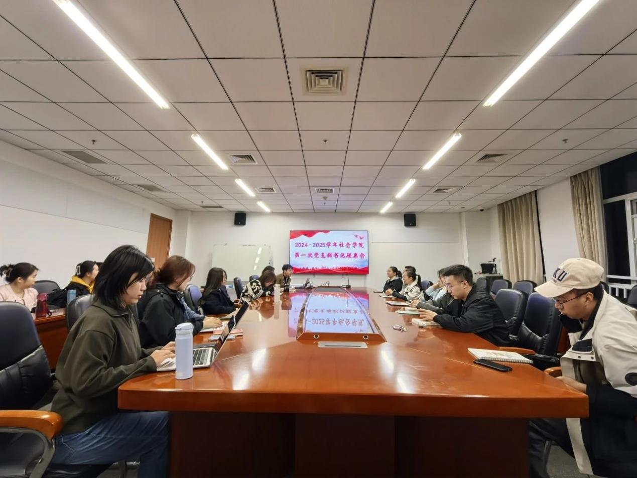 为深入学习贯彻党的二十届三中全会精神和习近平总书记在全国教育大会上的讲话精神,推动全会精神和习近平总书记关于教育的重要论述入脑入心入行,并进一步加强基层党组织的标准化、规范化建设,英国365集团公司于10月31日晚在324会议室成功召开2024-2025学年度第一次党支部书记联席会。社会公司党委副书记兼副经理姜斯琪、英国365集团公司团委书记朱博晨、团委副书记陈佩其出席会议,公司本硕博9个员工支部书记及委员们悉数参加。
