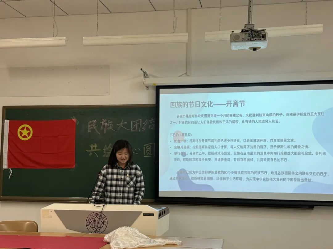 四个来自不同民族的同学分别介绍了藏族、回族、白族和蒙古族的文化,为我们展现了中华民族文化的多样性,带领我们深入走进了灿若舒锦的民族世界。
