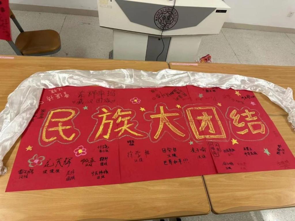 (来自藏族的同学教同学们写“民族团结”的藏语表达形式)